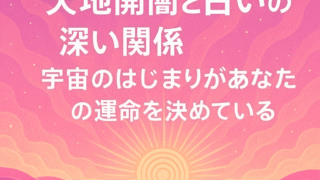 💛スピリチュアル・哲学・自己成長💛 【完全解説】天地開闢と占いの深い関係|宇宙のはじまりがあなたの運命を決めている 「天地開闢(てんちかいびゃく)」とは、古代日本や東洋思想における宇宙創造の瞬間を意味します。天(あめ)と地(つち)がまだ混ざり合っていた“混沌”の状態から分かれ、秩序ある世界が生まれた——。それが「天地開闢」です。この出来事は単なる神話上の... 2025.10.20 💛スピリチュアル・哲学・自己成長💛