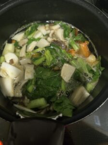 3) 具だくさん味噌汁(小松菜・エリンギ・にんじん) 約8〜10分