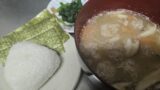 • 汁物:味噌汁(ラディッシュの葉と豆腐)→昨日の残り物の豚汁に変更!