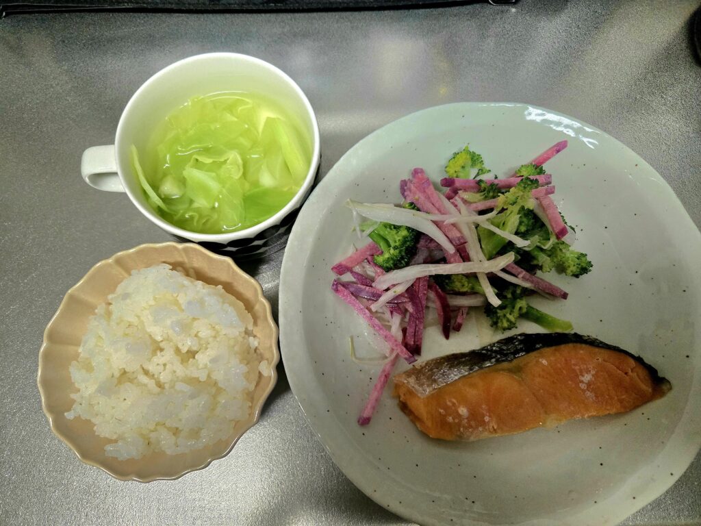 今回のメニュー「さけの塩焼きとブロッコリーサラダ定食」は、手早く作れて栄養バランスもしやすい組み合わせ。☺️